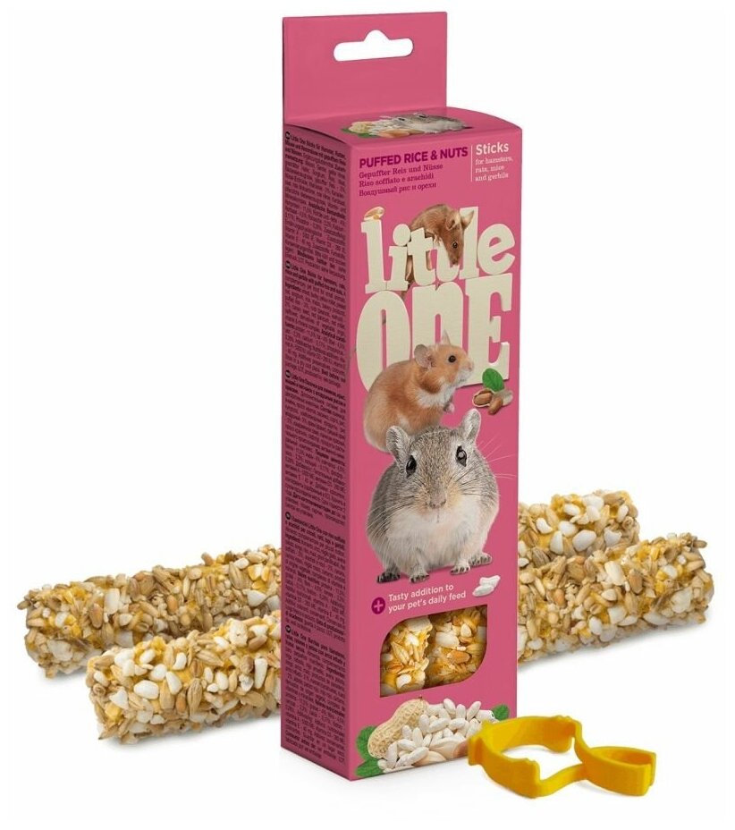 Лакомство Little One Палочки для хомяков, крыс, мышей и песчанок, с воздушным рисом и орехами (2 шт. по 55 г), 110 г