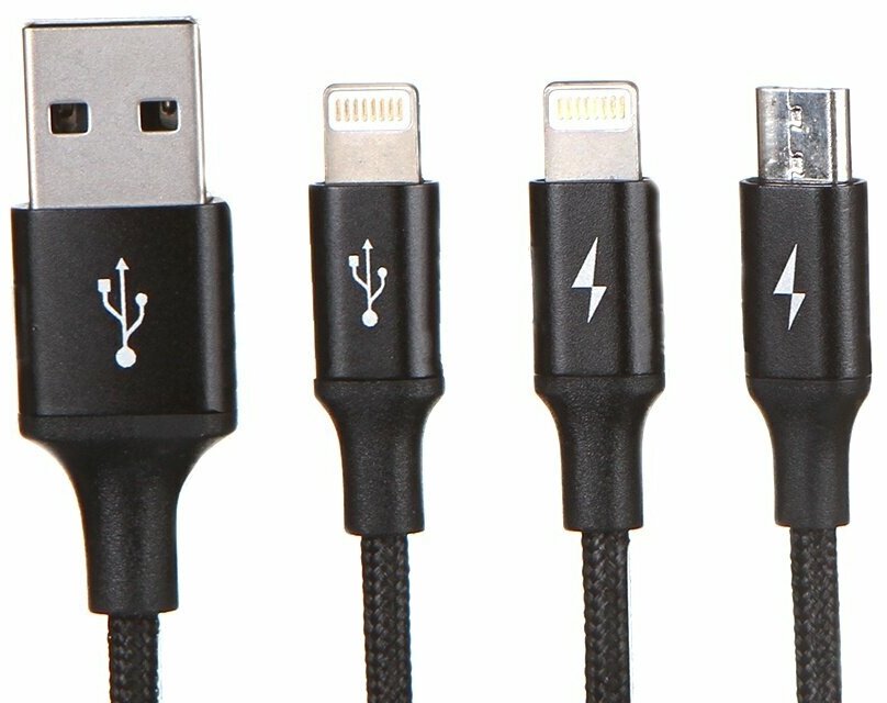Кабель Baseus 3 in 1 Rapid Series USB - microUSB/2xLightning (CAMLL-SU), 1.2 м, черный интересное: