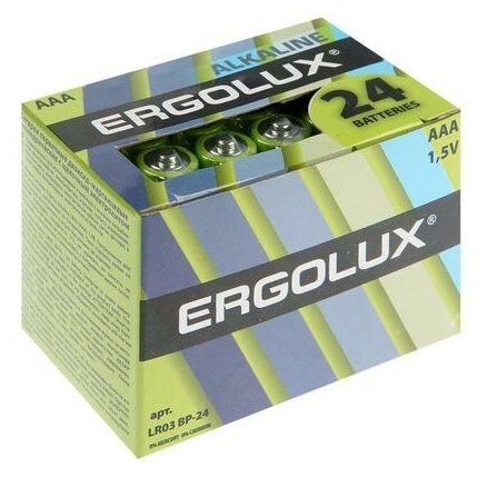 Батарейка алкалиновая Ergolux, AAA, LR03-24BOX (LR03 BP-24), 1.5В, набор 24 шт. 3781547