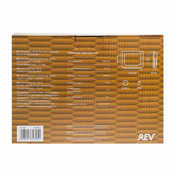 REV Прожектор светодиодный REV Ultra Slim, 100 Вт, 6500 К, 8000 Лм, IP65