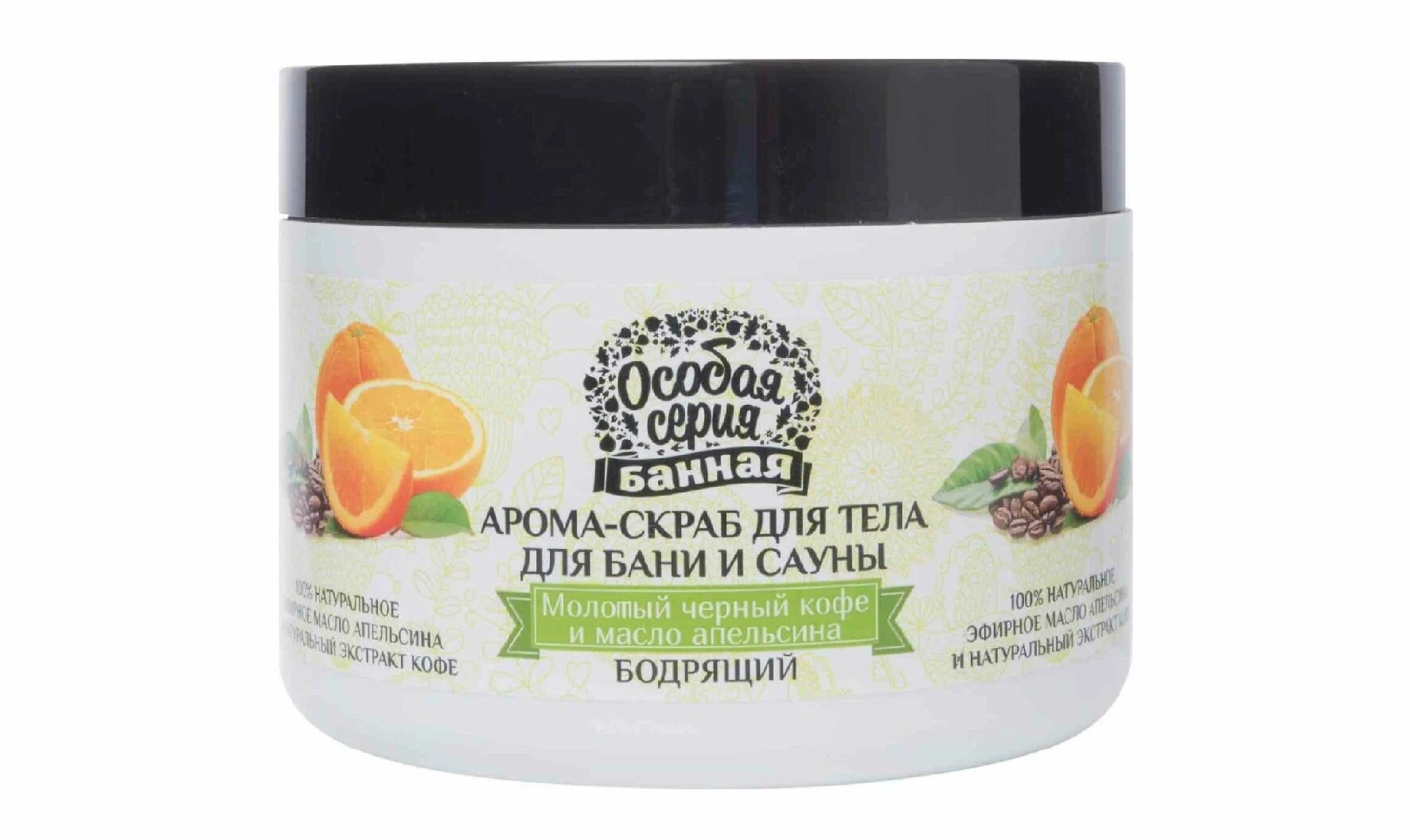 Особая Серия Банная Скраб для тела Бодрящий черный кофе и апельсин 500мл / пилинг для тела