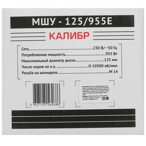 Калибр МШУ-125/955Е Машина шлифовальная угловая