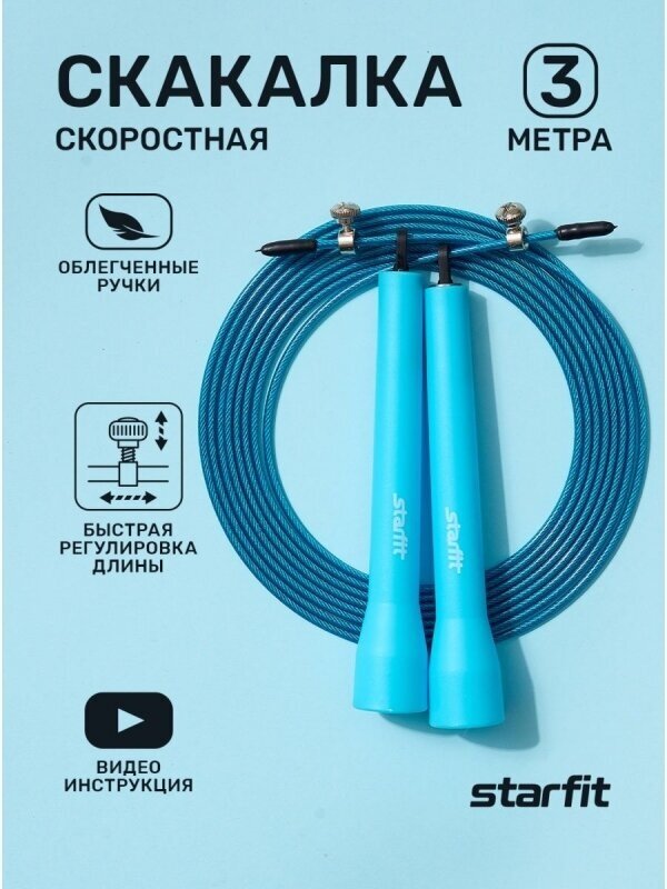 Скакалка StarFit RP-202 скоростная, синяя, 3 м