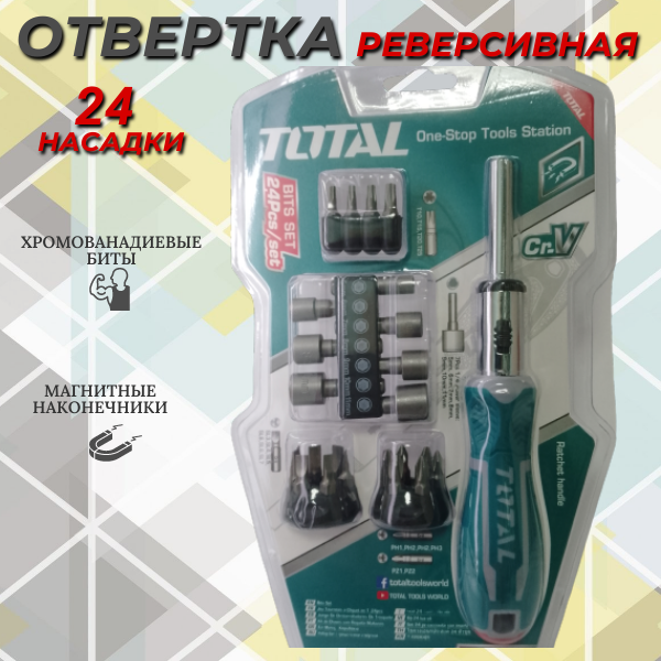 Отвертка реверсивная с набором бит 24 шт TOTAL