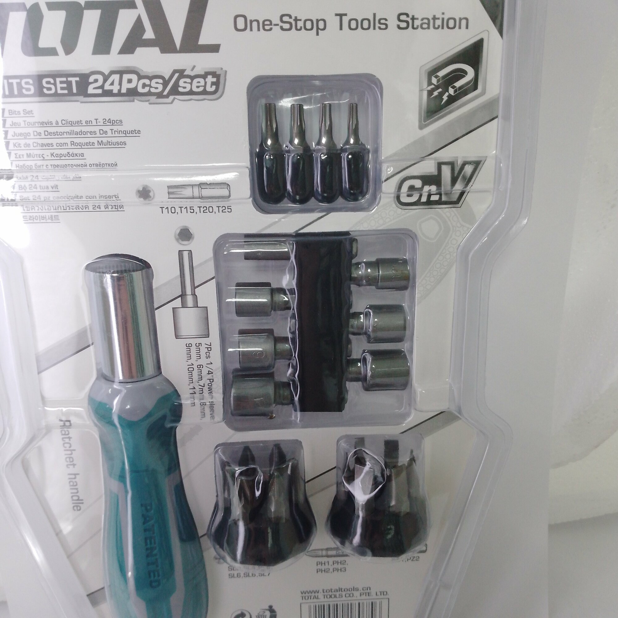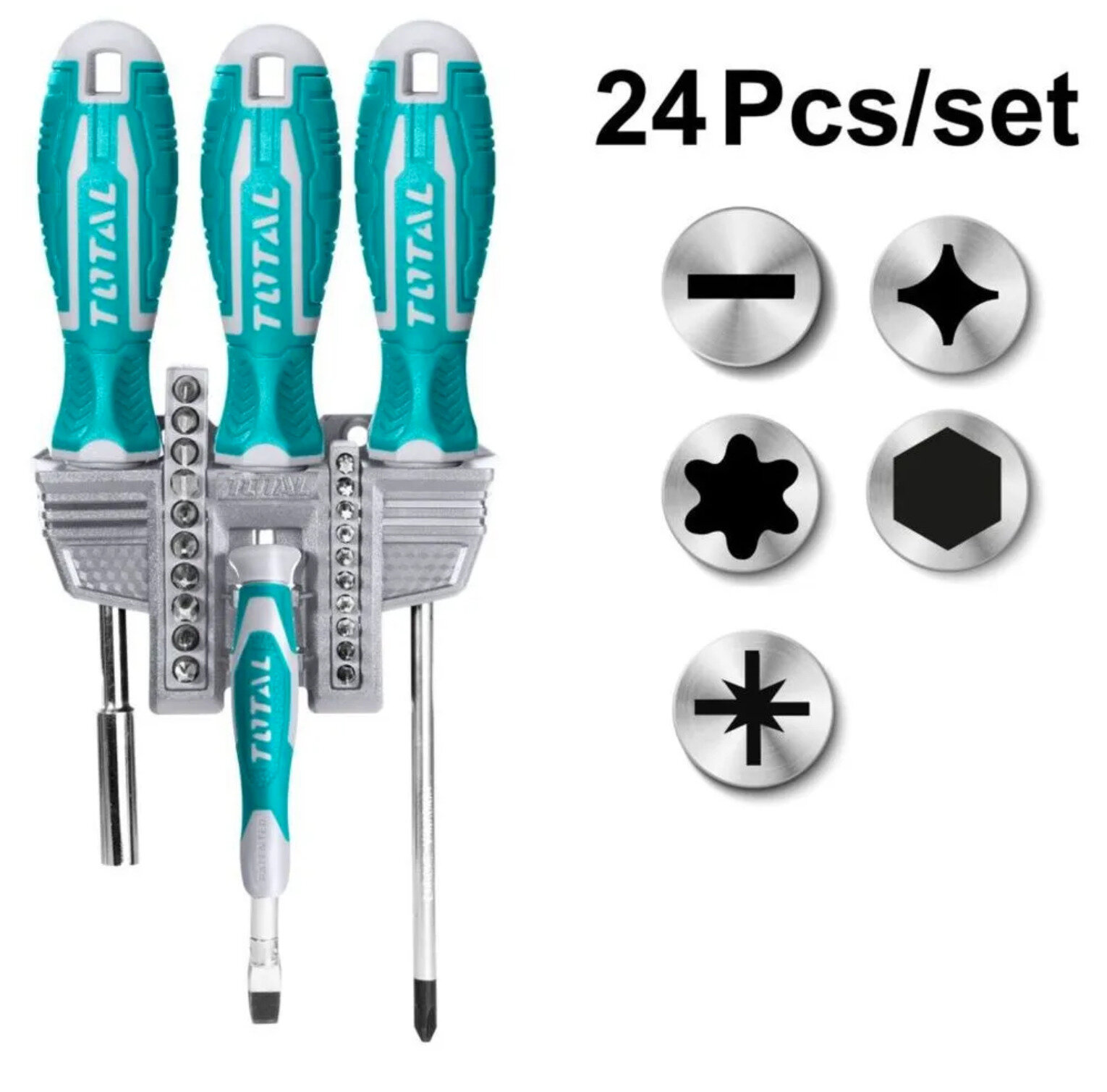 Набор бит и торцевых головок TOTAL TACSD30246, 24 предм., бирюзовый, 1 уп.