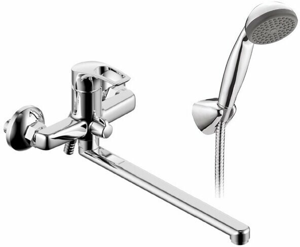 Смеситель для ванны/душа Zenta Старк с длинным изливом, излив 300 мм, керам. переключатель, c аксессуарами, хром Z1902