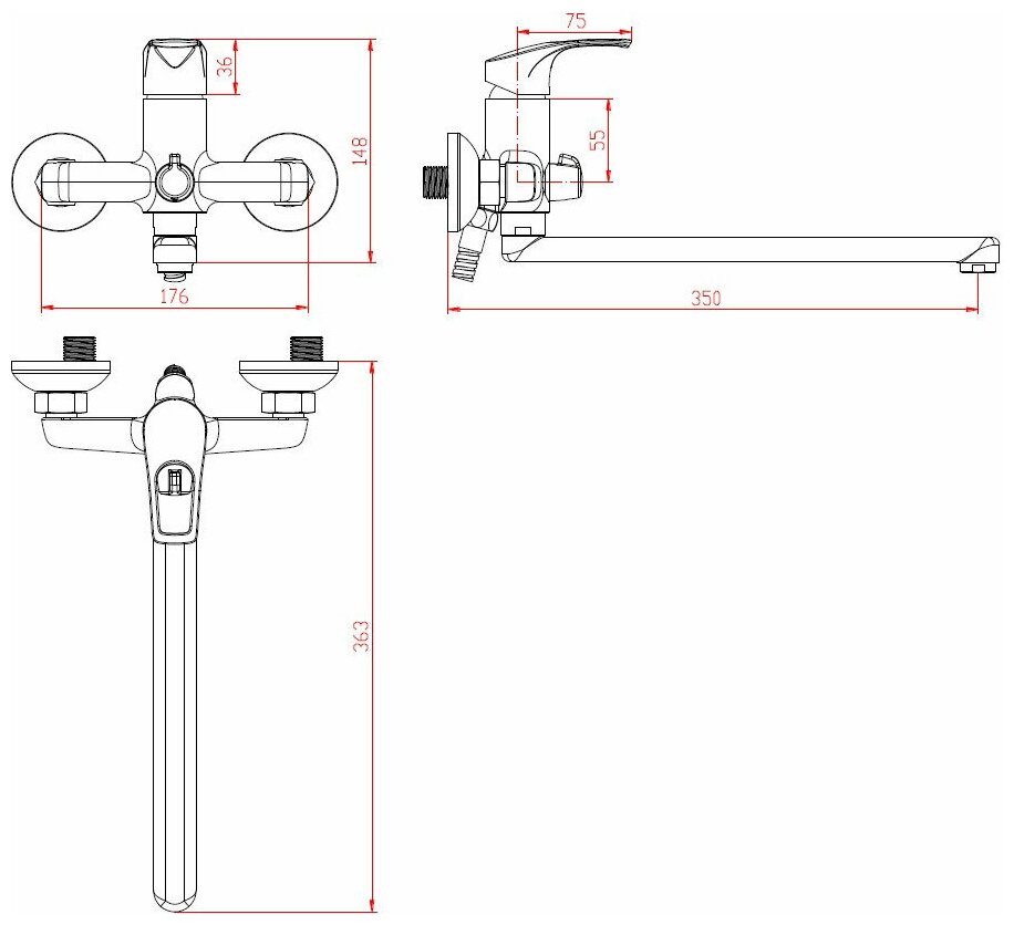 | Длина излива | 350 мм |