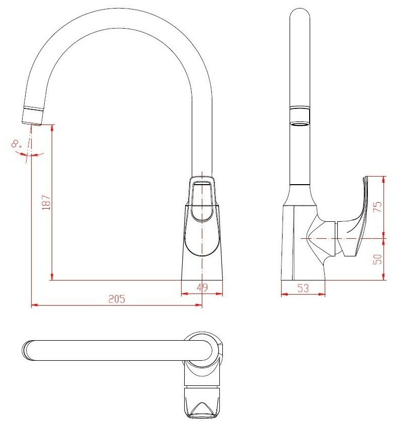 | Длина излива | 205 мм |