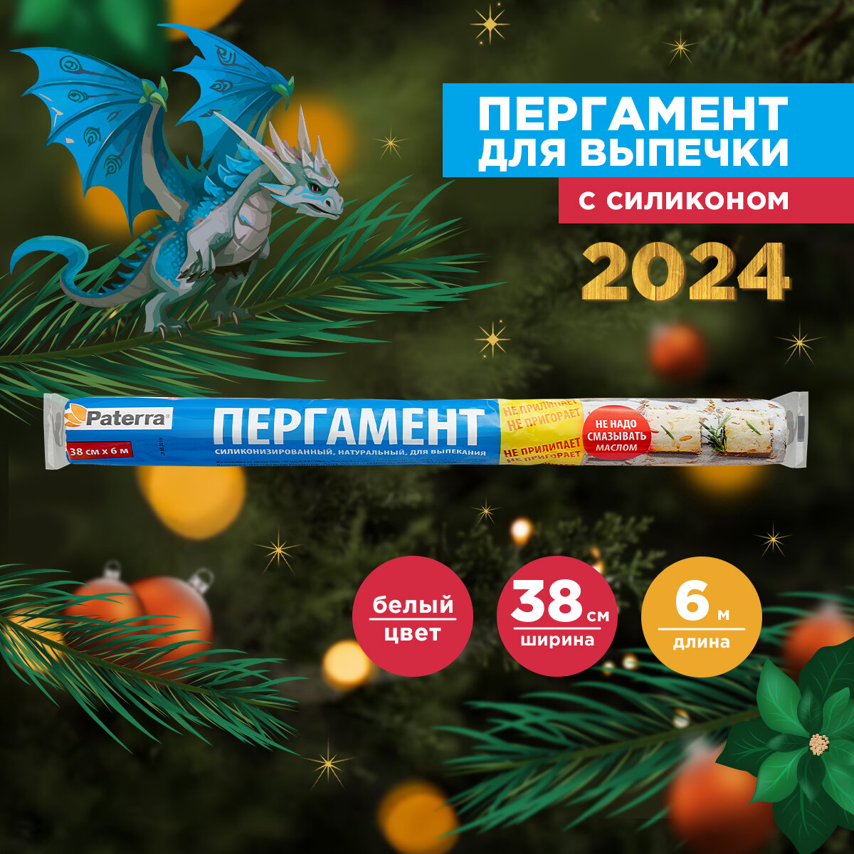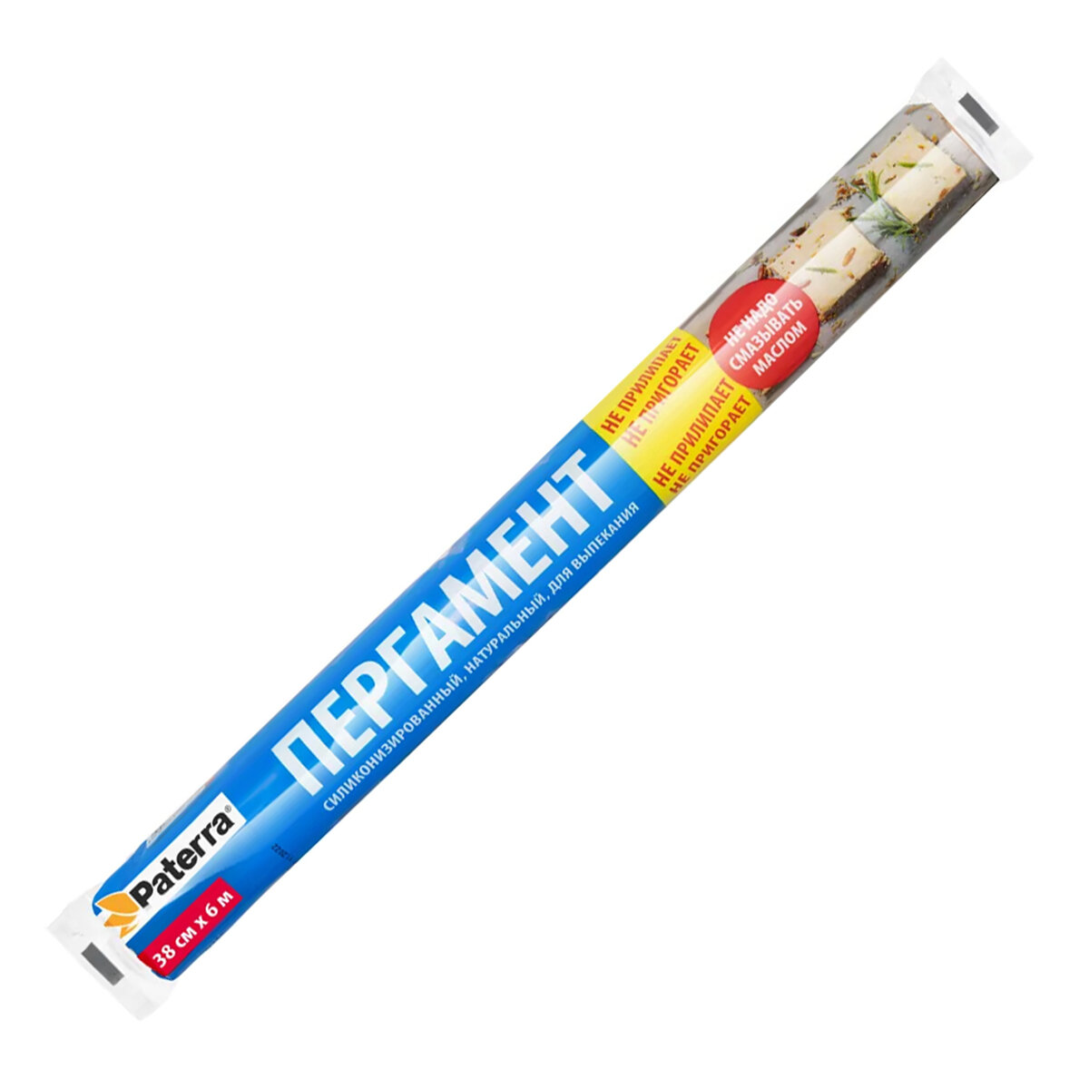 Пергамент силиконизированный (бумага) для выпекания натуральный, PATERRA, белый, 38 см * 6 м 209-008