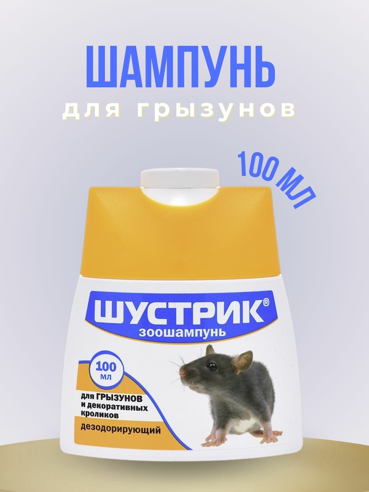 Шампунь для грызунов Шустрик дезодорирующий / средство для ухода за шерстью / шампунь для крыс / хомяков / кроликов / морских свинок / 100мл