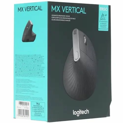 Мышь Logitech MX Vertical, черный и серебристый [910-005449]