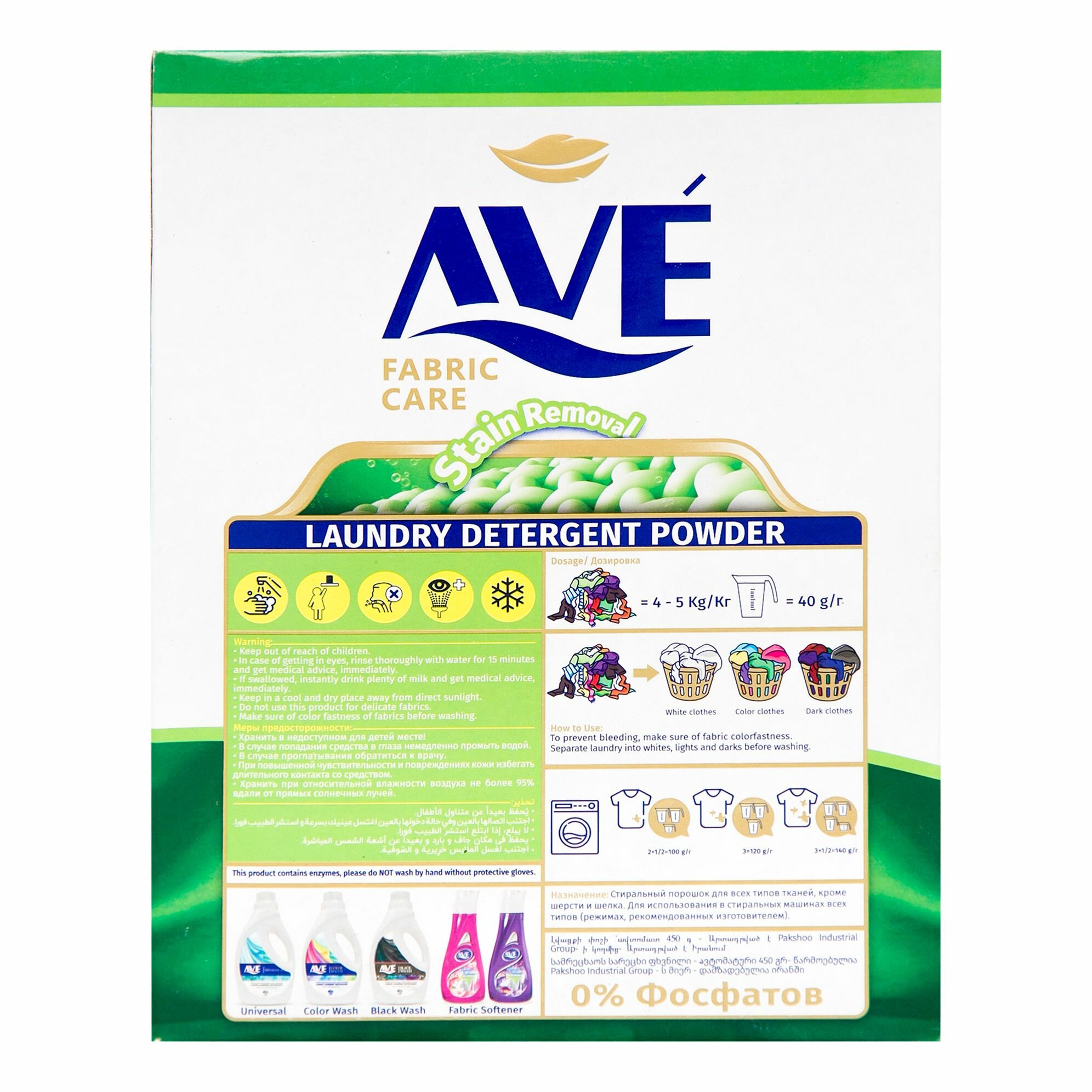 Стиральный порошок AVE для всех видов ткани,450 гр. Иран