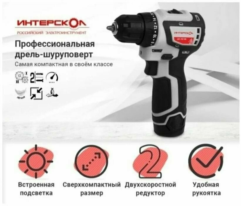 Аккумуляторная дрель Интерскол ДА-10/18Л2 Li-ion