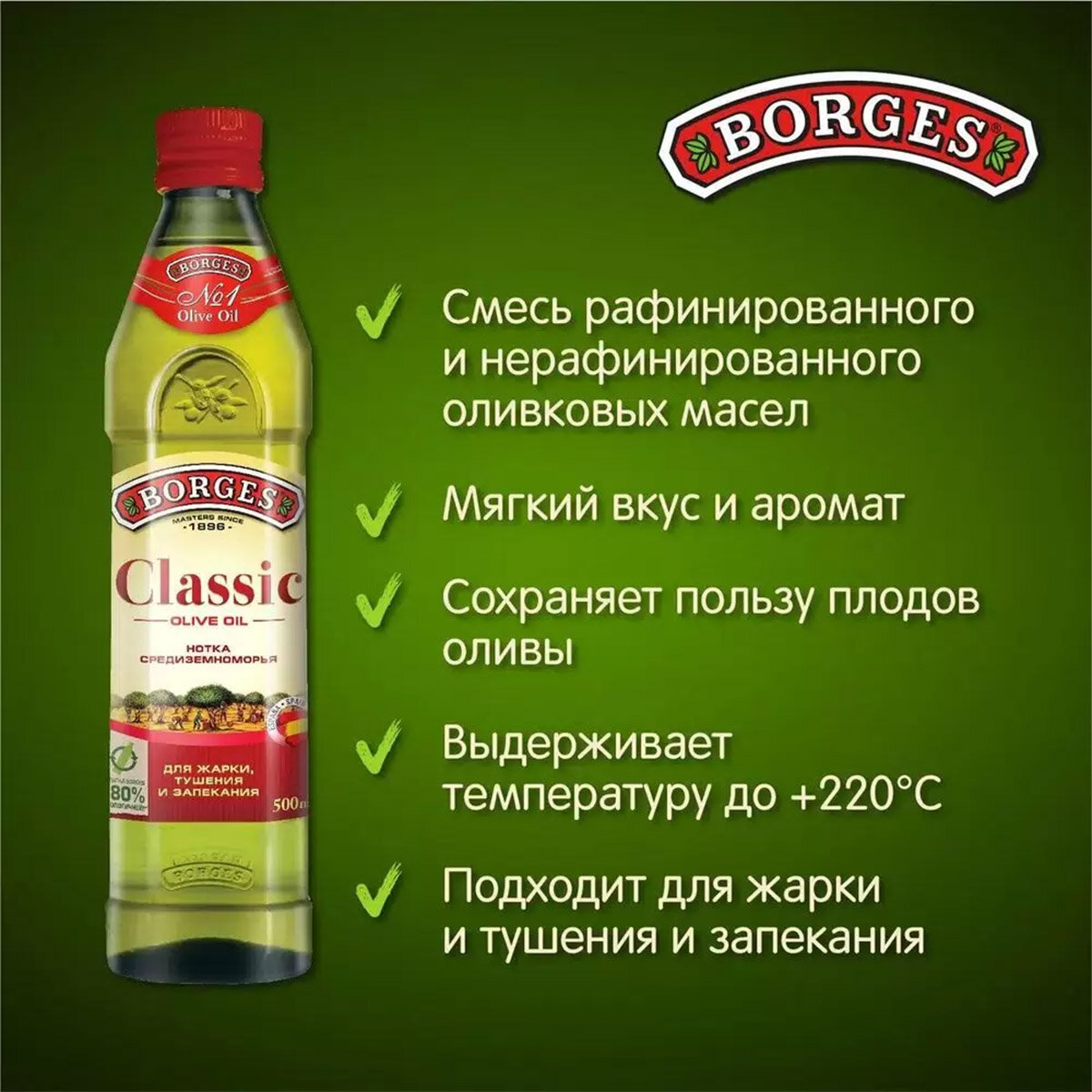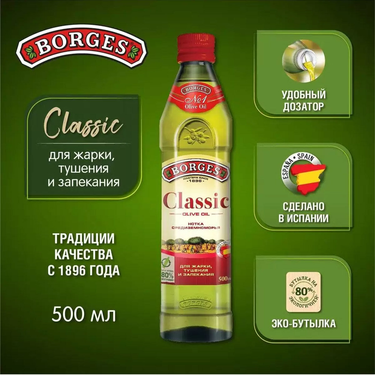 Масло оливковое BORGES Classic 100%, 0,5л