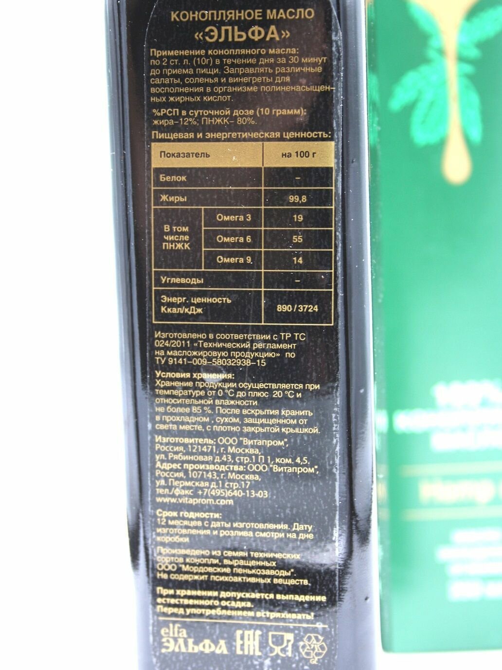 Масло Конопляное Эльфа 0,25 л (стеклянная бутылка в подарочной коробке)