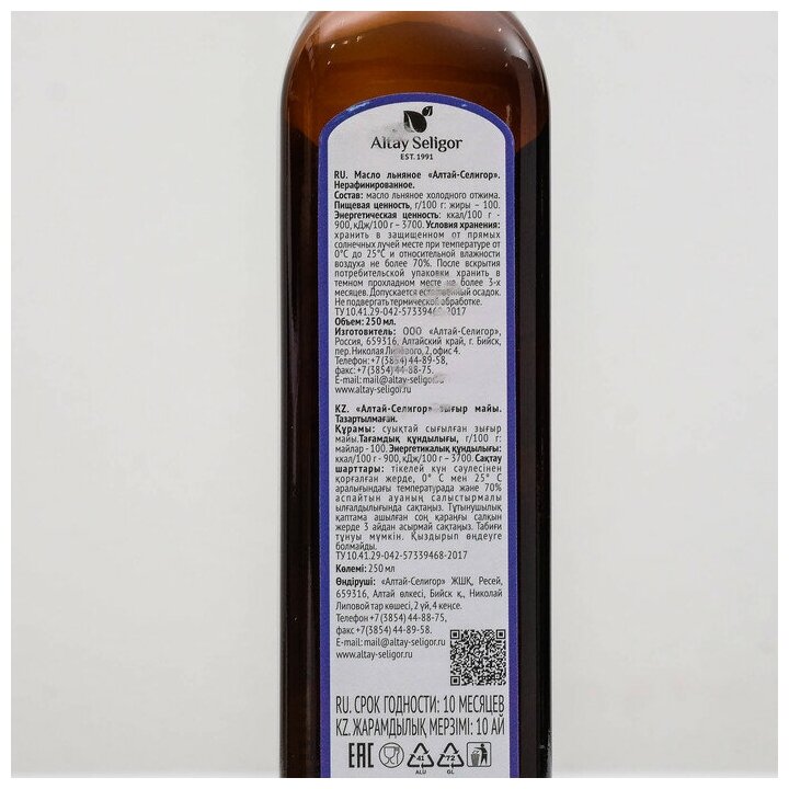 Масло льняное Altay Seligor 250 мл интересное: