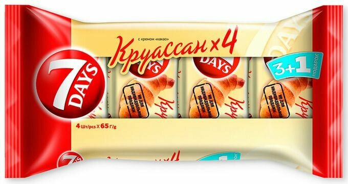 Круассан 7Days промо 3 + 1 с кремом какао, 4 шт по 65 г