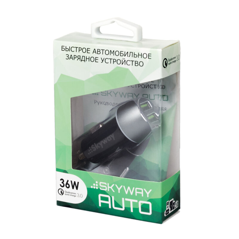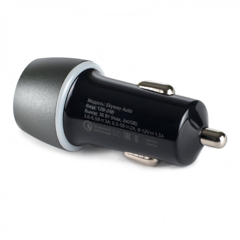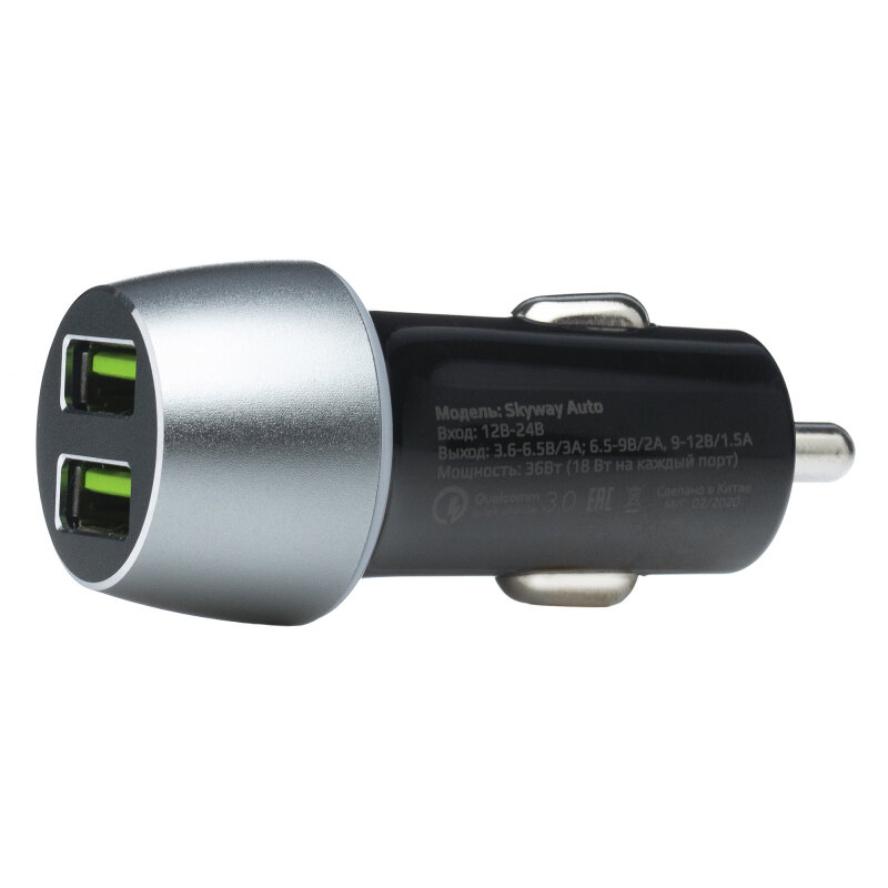Автомобильное зарядное устройство Skyway Auto c поддержкой Qualcomm Quick Charge 3.0, 2xUSB, 36 Вт