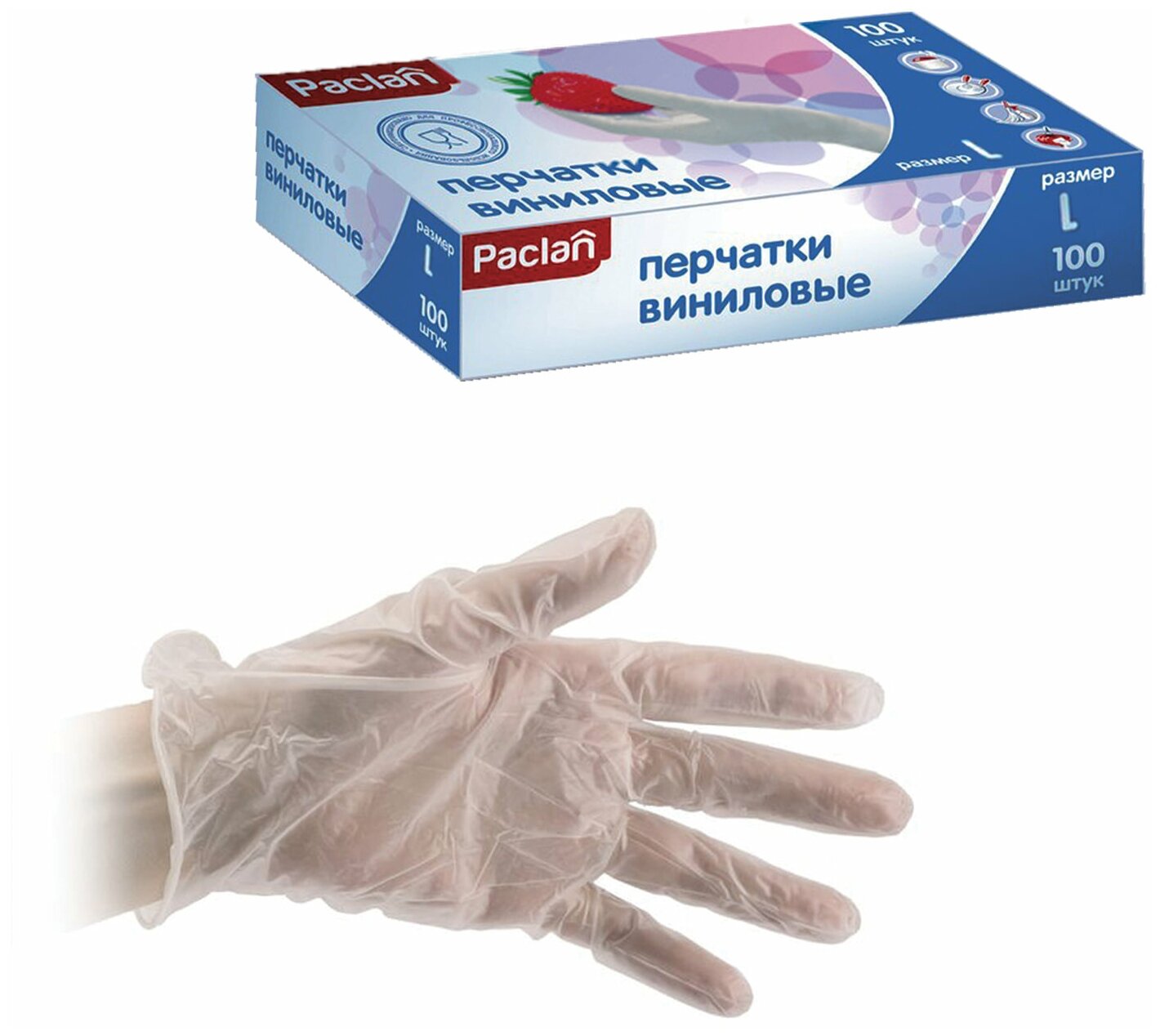 Перчатки хозяйственные Paclan Виниловые, 100 шт. Размер L - Sedo-haushold-prodakts