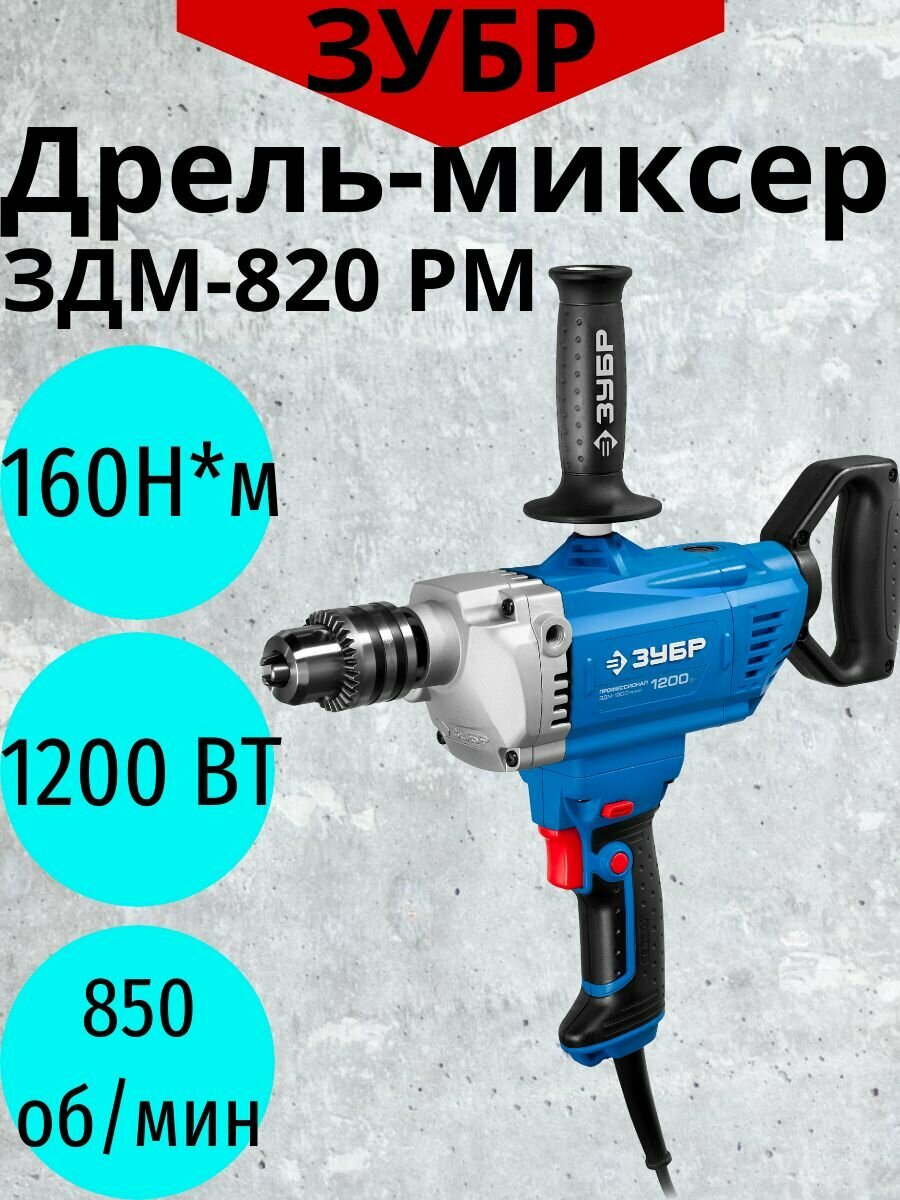 Дрель-миксер реверсивная ЗДМ-1200 РММ2, 160 Нм, патрон 16 мм, 0-850 об/мин, 1200 ЗУБР Профессионал