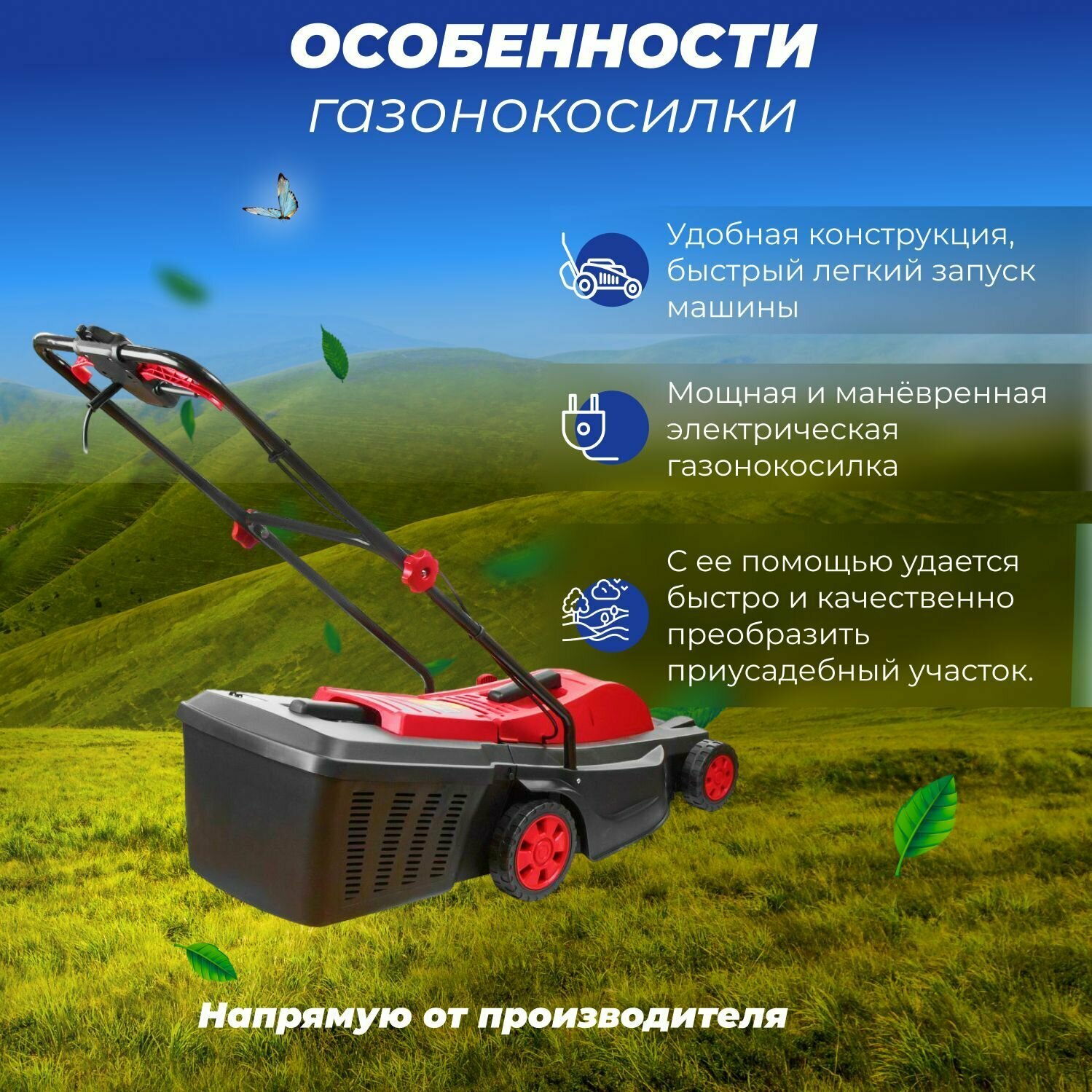 Газонокосилка электрическая садовая ручная WORTEX LM 4018 P (LM4018P0019), косилка для травы и газона, электрокосилка для дачи