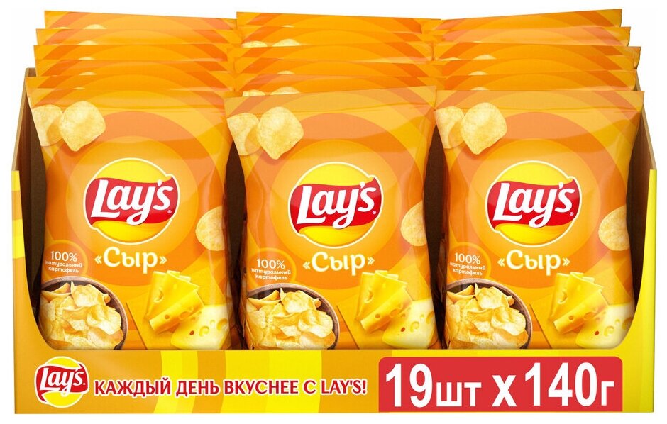 Купить Чипсы Lay's картофельные, сыр, 140 г, 19 уп.