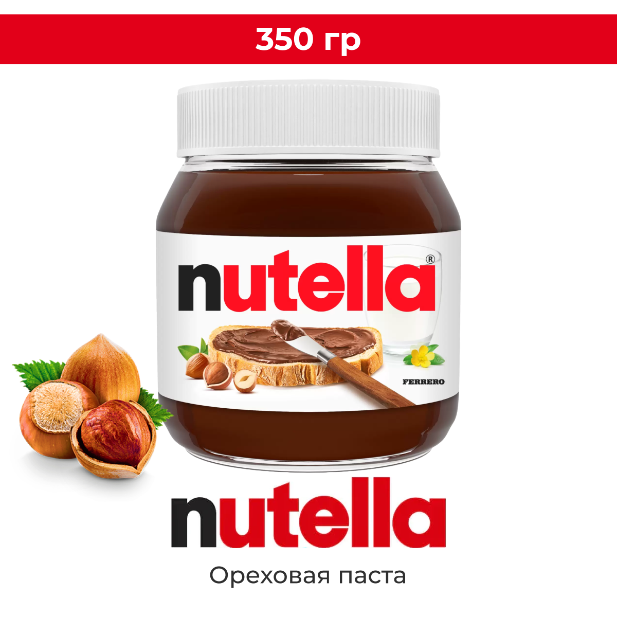Паста ореховая с добавлением какао Nutella, 350 г, стеклянная банка, 15 шт.