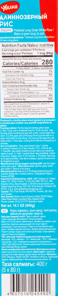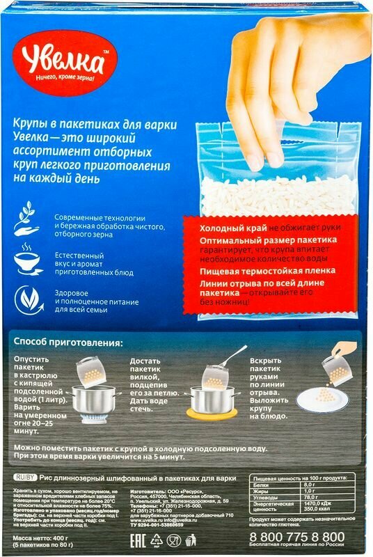 Рис увелка длиннозерный в пакетиках, 5х80г интересное: