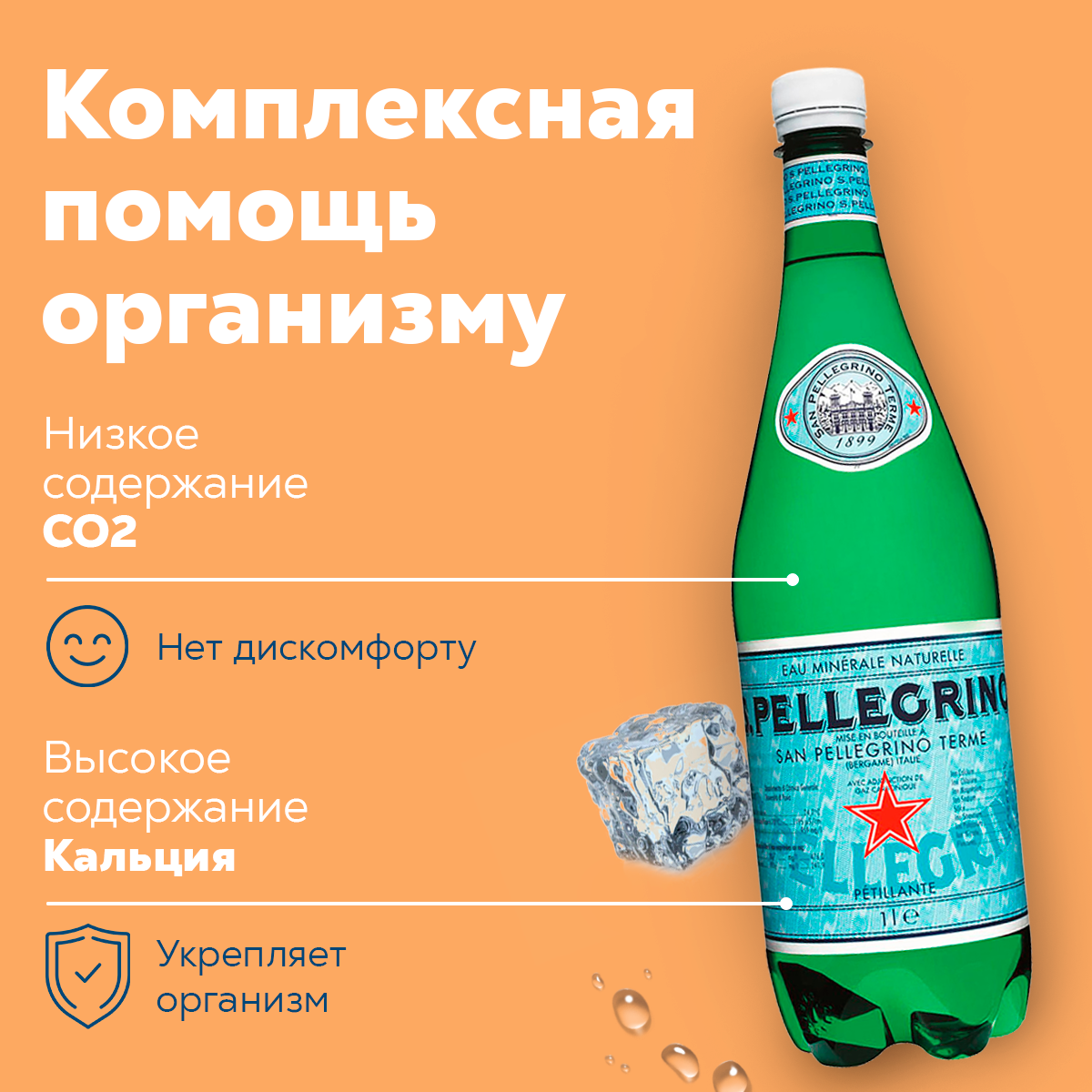 Минеральная вода S. Pellegrino 1 л., с газом, ПЭТ, 6 штук