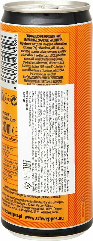 Газированный напиток Schweppes Citrus Mix / Швепс Цитрус Микс 330 мл. (Польша) интересное:
