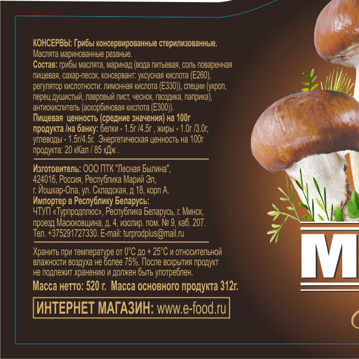 Грибы Маслята маринованные, 520г ECOFOOD интересное: