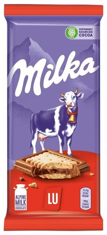 Шоколад Milka молочный с печеньем LU, 87 г