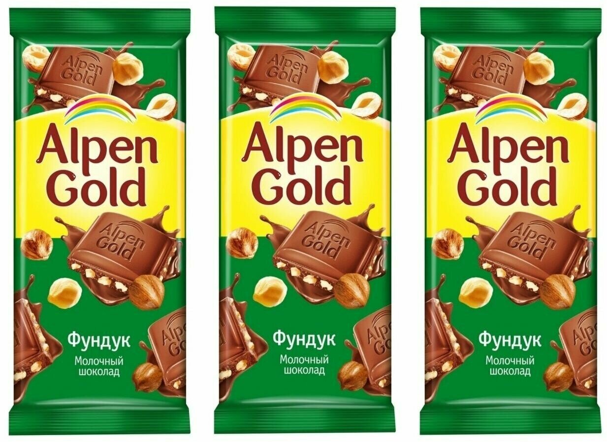 Шоколад Alpen Gold молочный с фундуком, 85 г, 21 уп., 21 шт. в уп.
