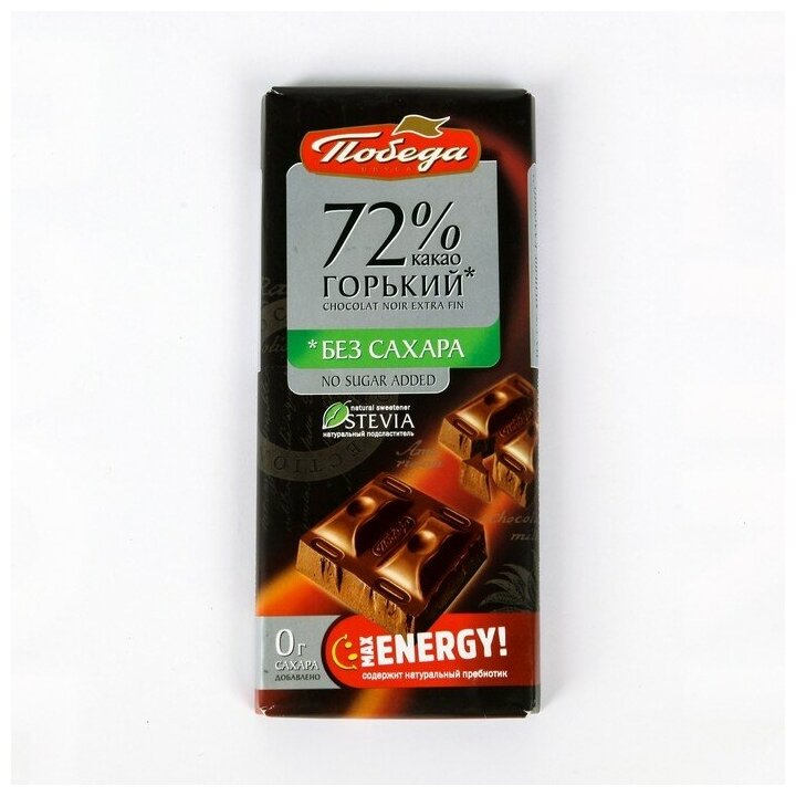 Победа вкуса, Шоколад горький 72%, без сахара, 2 штуки