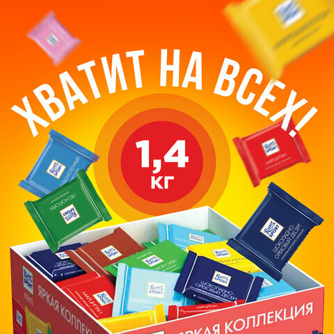 Ниже Вы можете прочитать отзывы на Шоколад порционный RITTER SPORT, набор 7 вкусов, 84 плитки по 16,7 г, R 484C, ознакомится с подробными характеристиками, посмотреть интересные обзоры и фотографии на Шоколад порционный RITTER SPORT, набор 7 вкусов, 84 плитки по 16,7 г, R 484C.