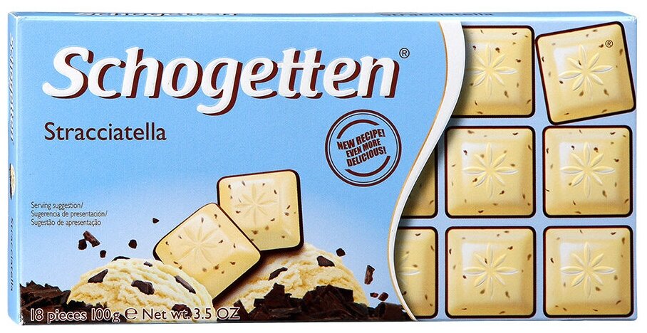 Ниже Вы можете прочитать отзывы на Белый шоколад Schogetten с обжаренными кусочками зерен какао, темный шоколад STRACCIATELLA, 100г, ознакомится с подробными характеристиками, посмотреть интересные обзоры и фотографии на Белый шоколад Schogetten с обжаренными кусочками зерен какао, темный шоколад STRACCIATELLA, 100г.