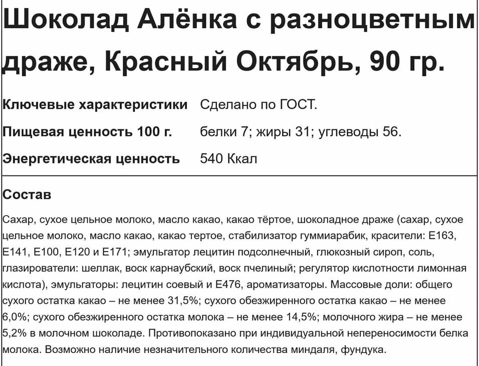 90Г шоколад аленка С драже интересное: