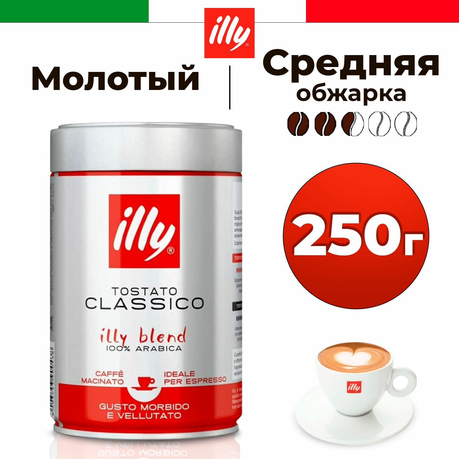 Кофе illy молотый, средней обжарки, банка 250 г