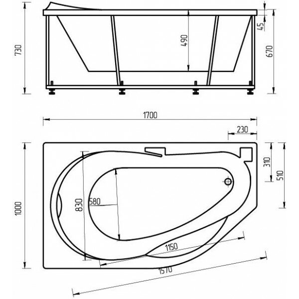 Акриловая ванна Aquatek Таурус 170х100 R TAR170-0000129 без гидромассажа с фронтальной панелью с каркасом (разборный) со слив-переливом