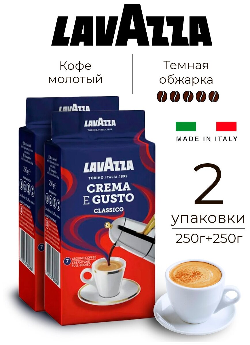 Кофе молотый Lavazza Crema e Gusto Classico, вакуумная упаковка, 250 г, вакуумная упаковка, 2 уп.