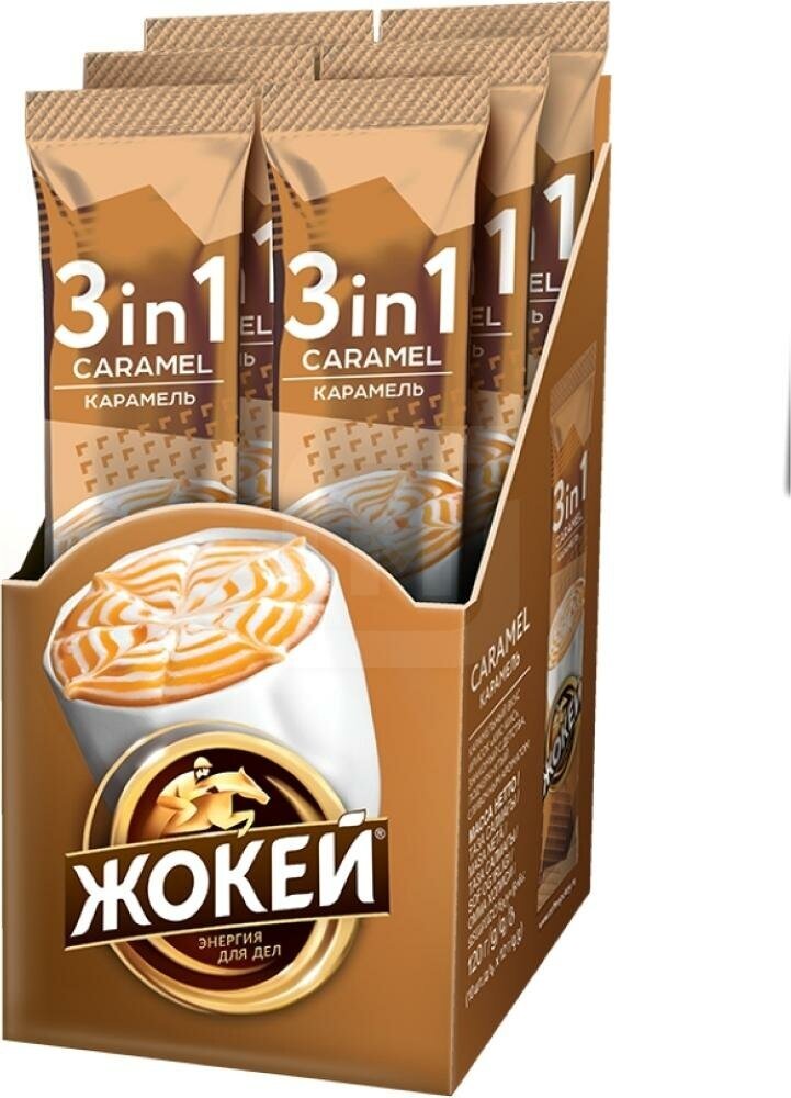 Растворимый кофе Жокей Карамельный 3 в 1, в стиках, 50 уп., 600 г
