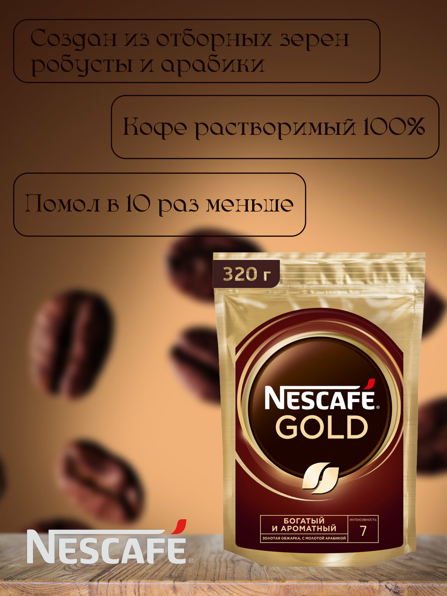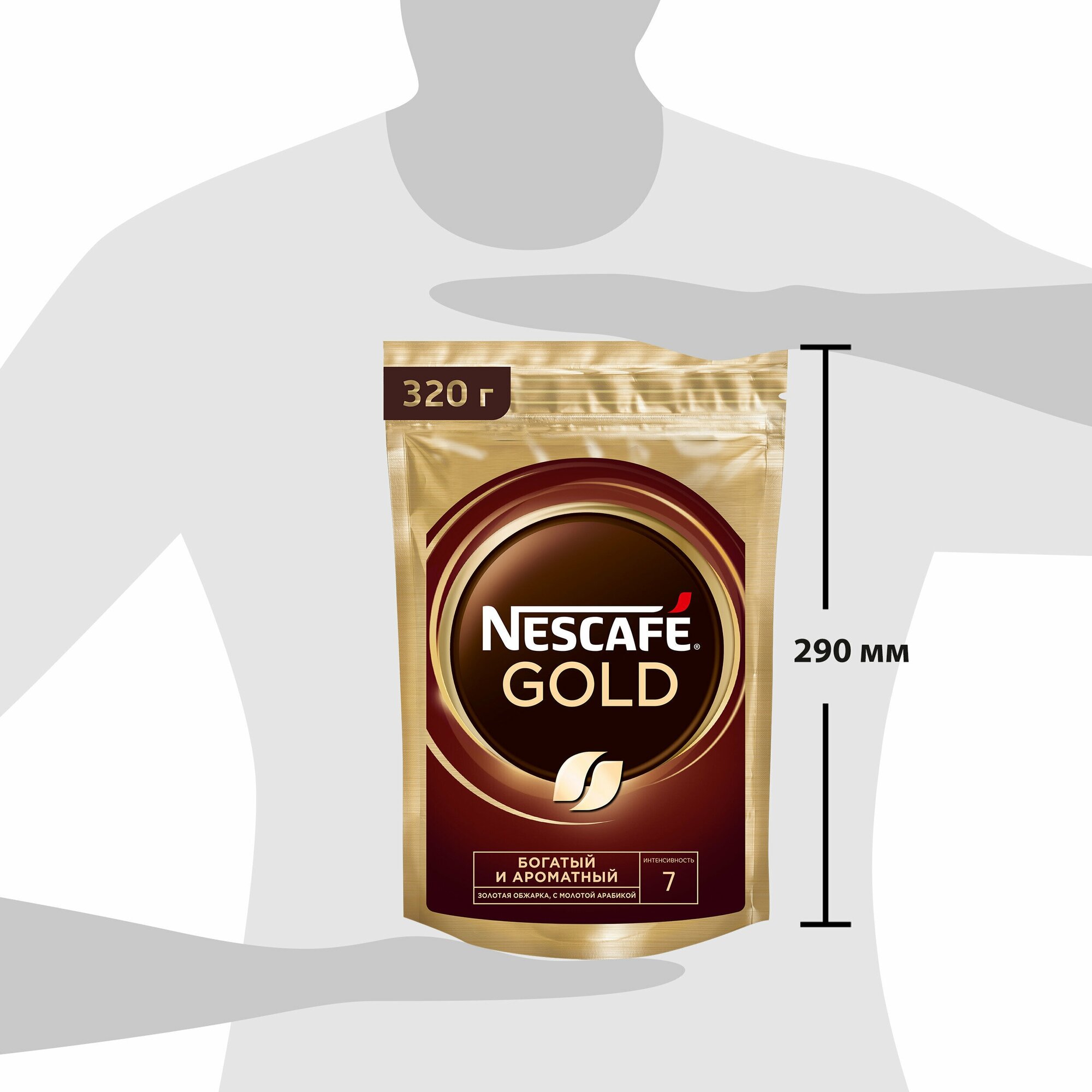 Купить NESCAFÉ Gold, 100% натуральный растворимый сублимированный кофе с добавлением натурального жареного молотого кофе, пакт 320гр