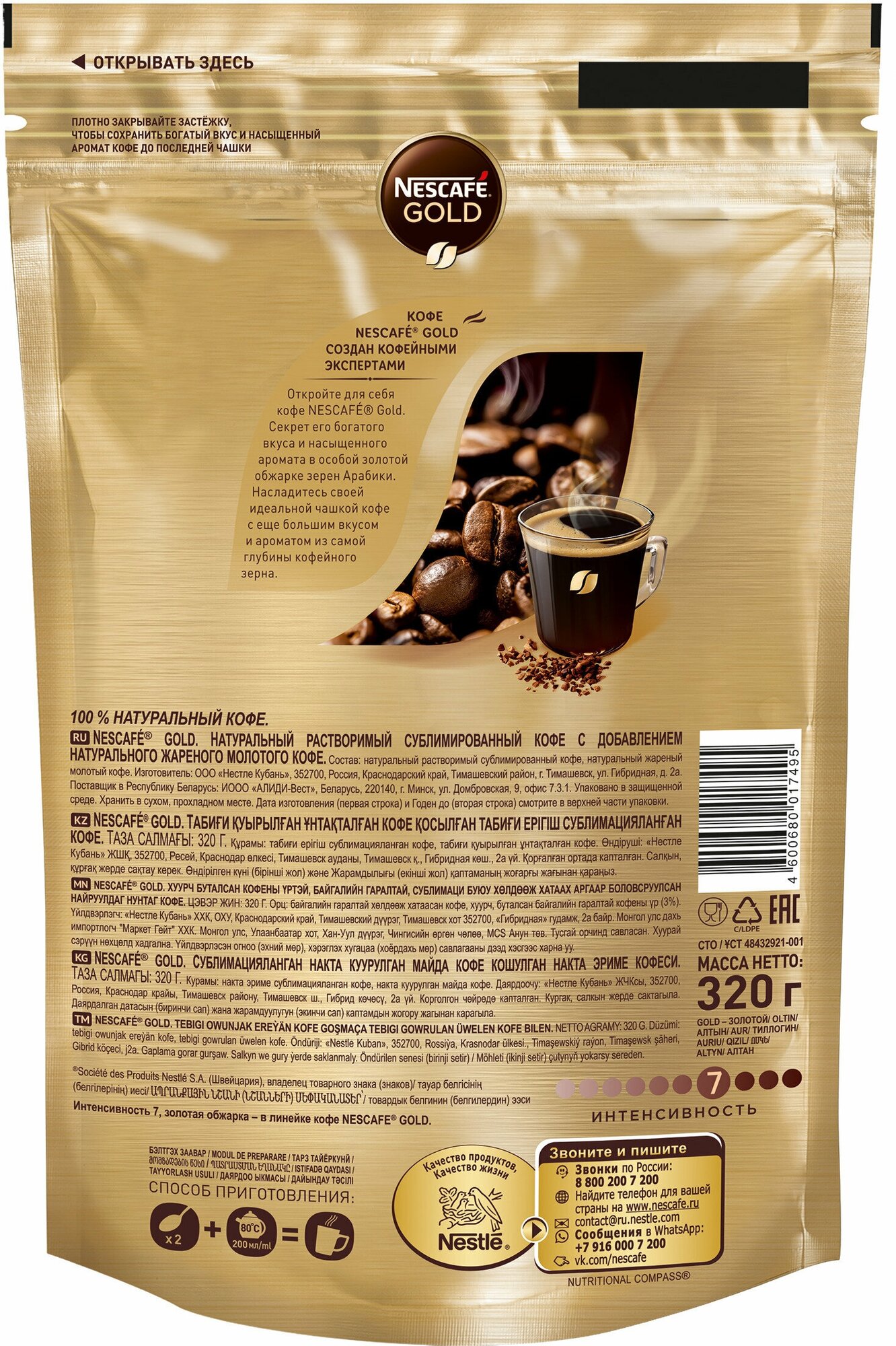 СохранитьNESCAFÉ Gold, 100% натуральный растворимый сублимированный кофе с добавлением натурального жареного молотого кофе, пакт 320гр интересное: