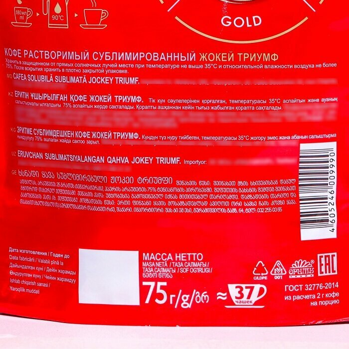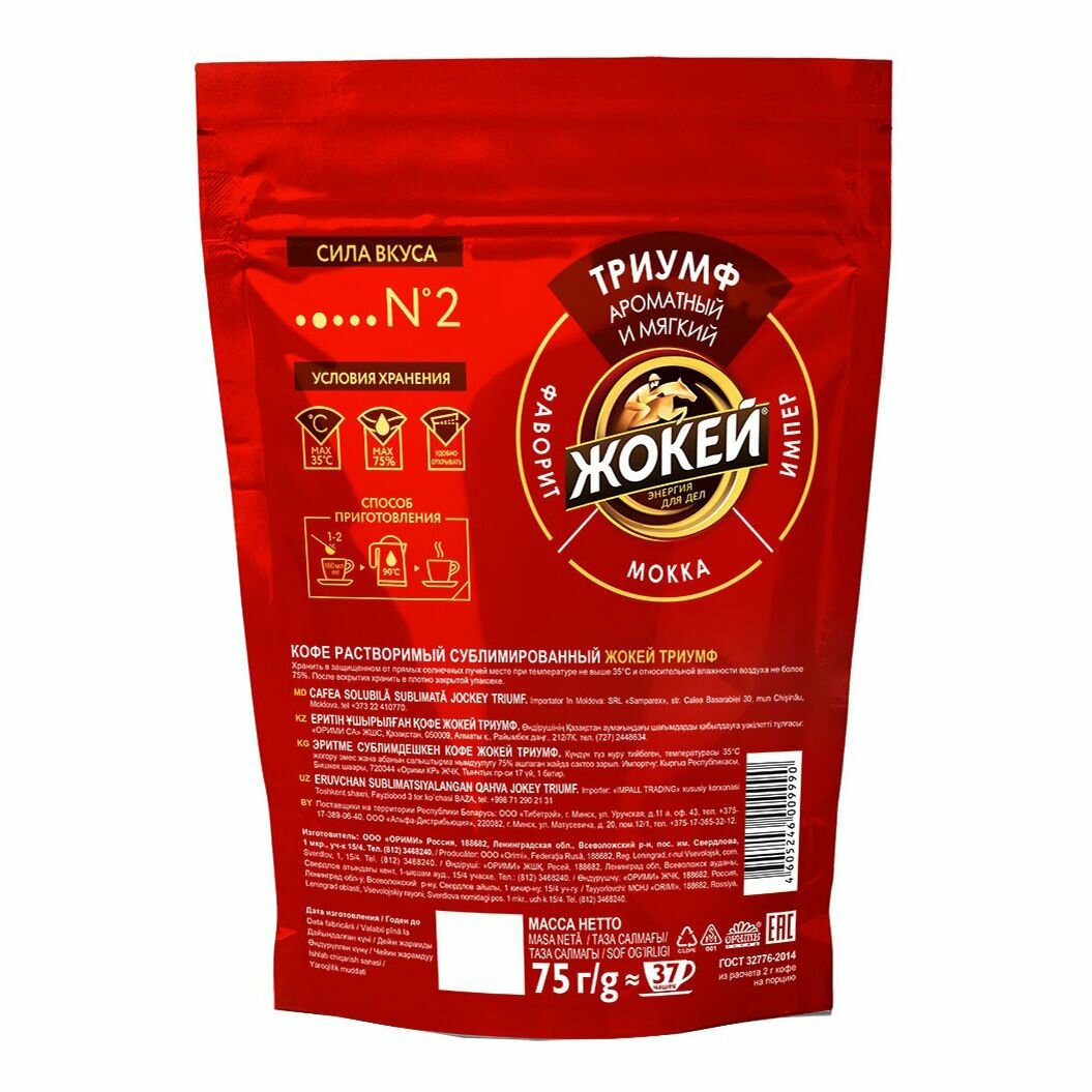 Кофе "Жокей" Триумф, растворимый, сублимированный, мягкая упаковка, 75 г
