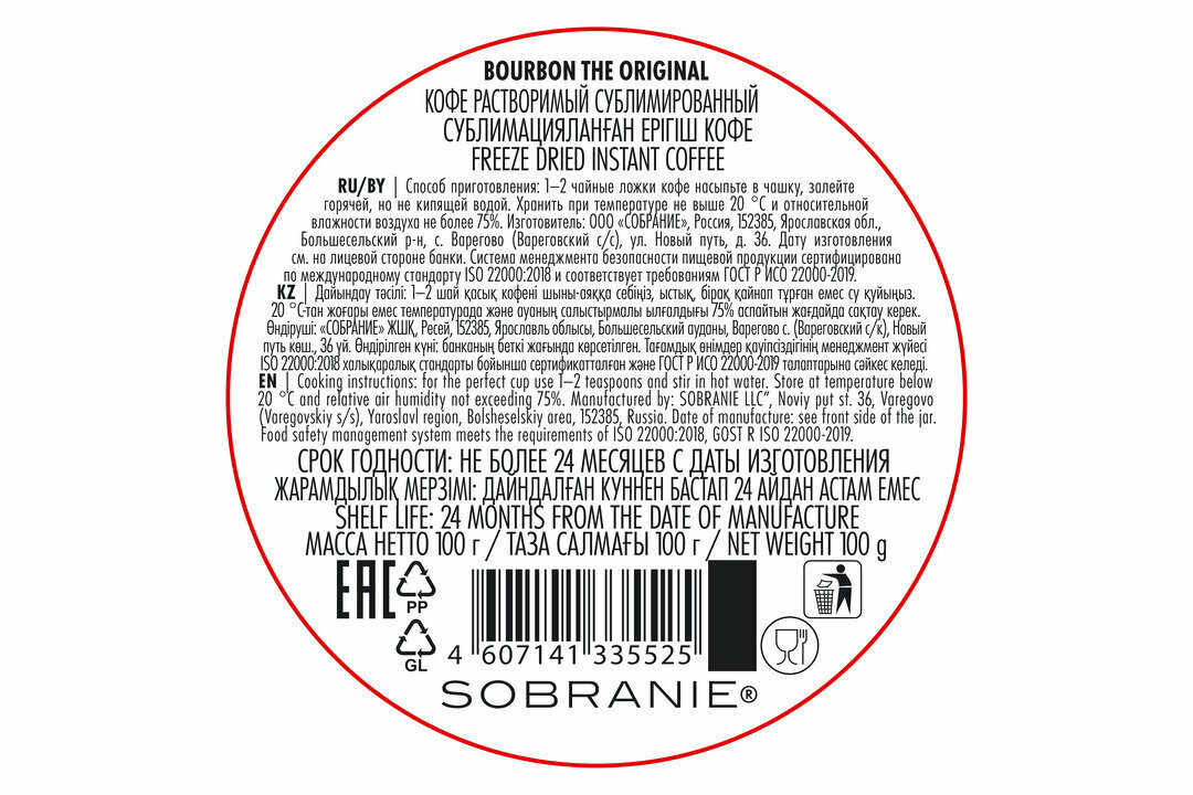 Кофе BOURBON THE ORIGINAL растворимый стеклянная банка, 100 г