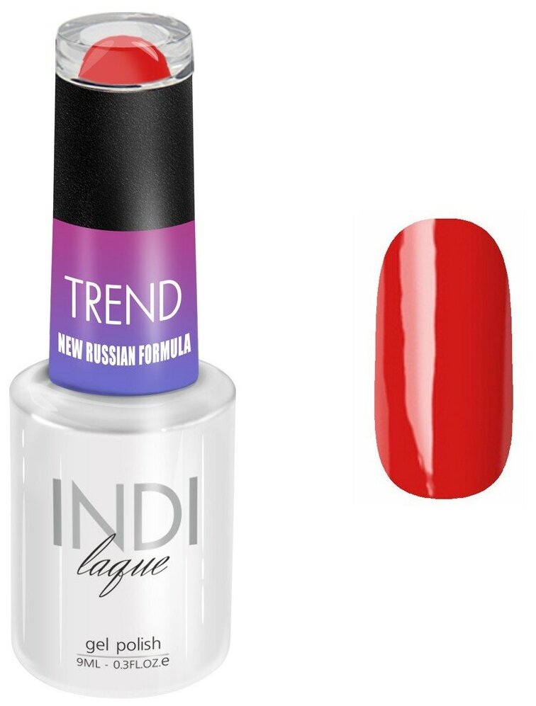 ruNail, Гель-лак INDI laque TREND, 9 мл №5075 (кораллово-красный, без блесток и перламутра, плотный.)