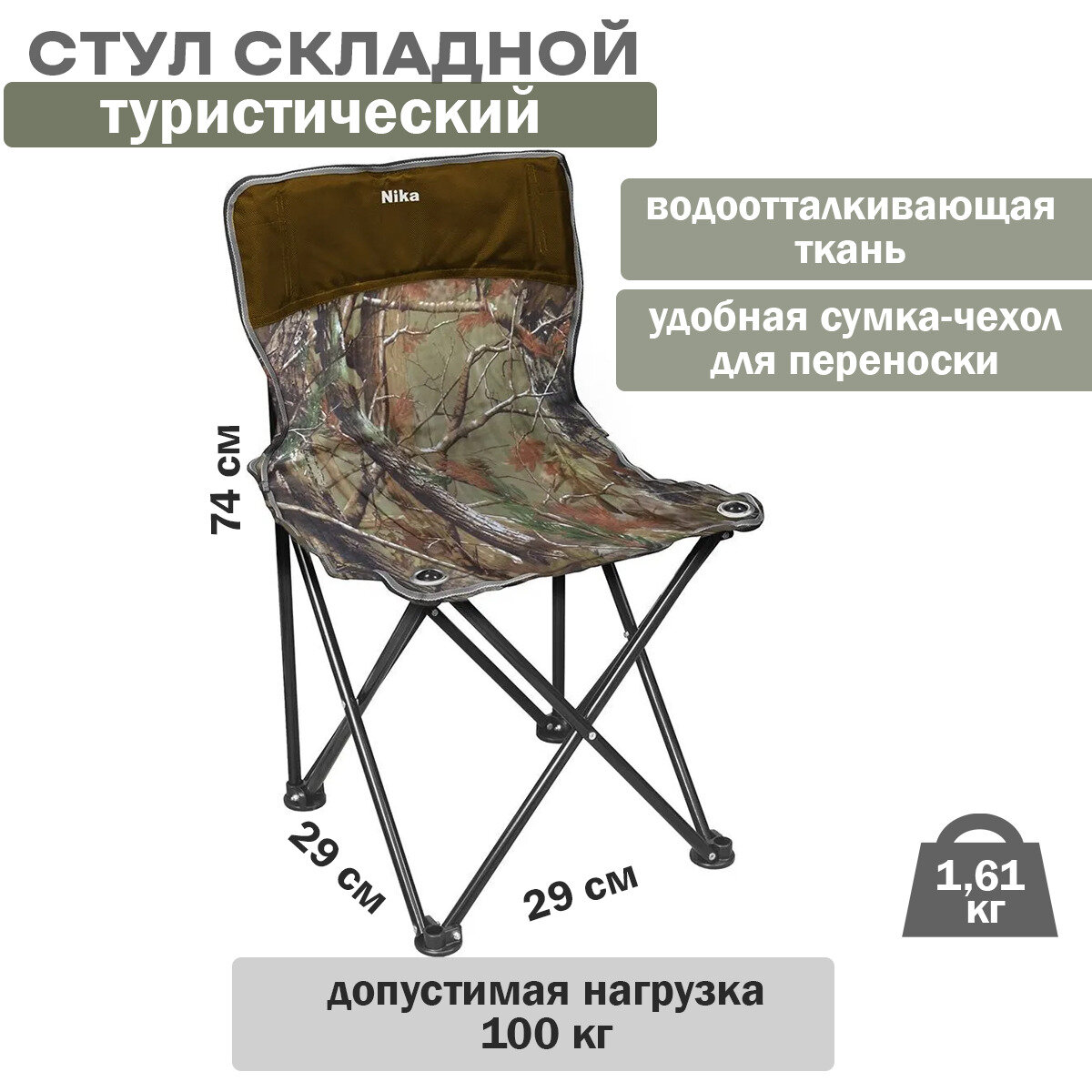 Стул складной туристический Nika ПСП2/2 походный со спинкой для кемпинга пикника дачи и рыбалки