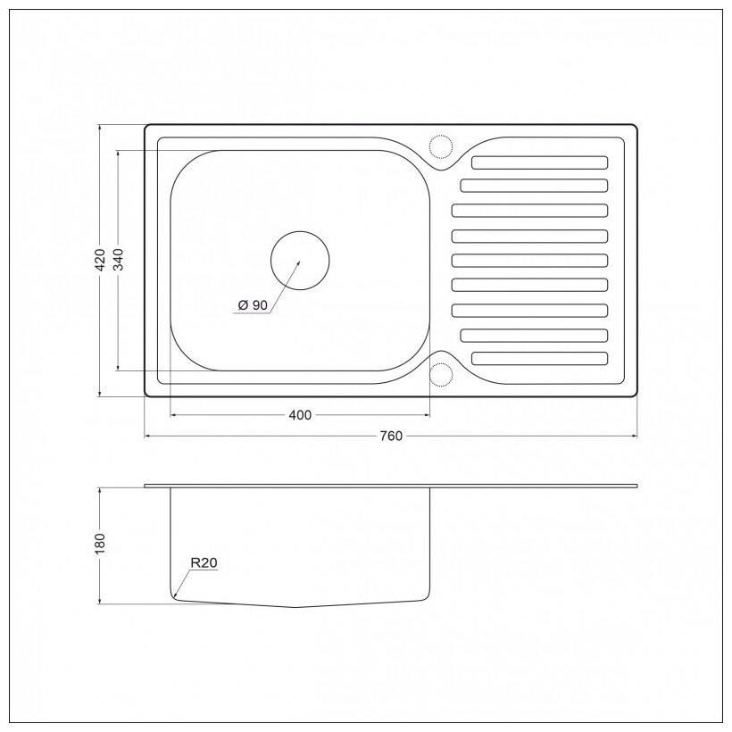Кухонная мойка EMAR 302A врезная мойка, с крылом, нржавеющая сталь