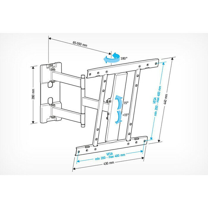 Кронштейн Holder LCD-SU4601-B черный для ЖК ТВ 26-50" настенный от стены 65-550мм наклон +15/-15° VESA 400x400 до 35 кг