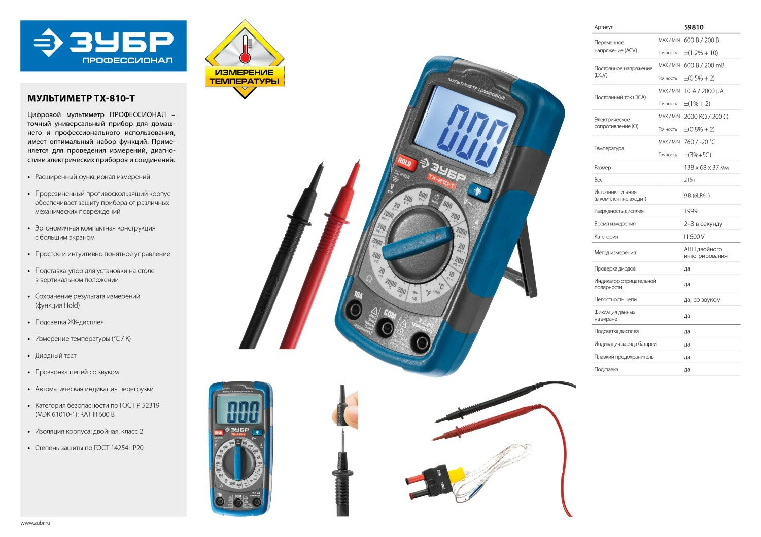 ЗУБР ТХ-810-Т, цифровой мультиметр (59810)